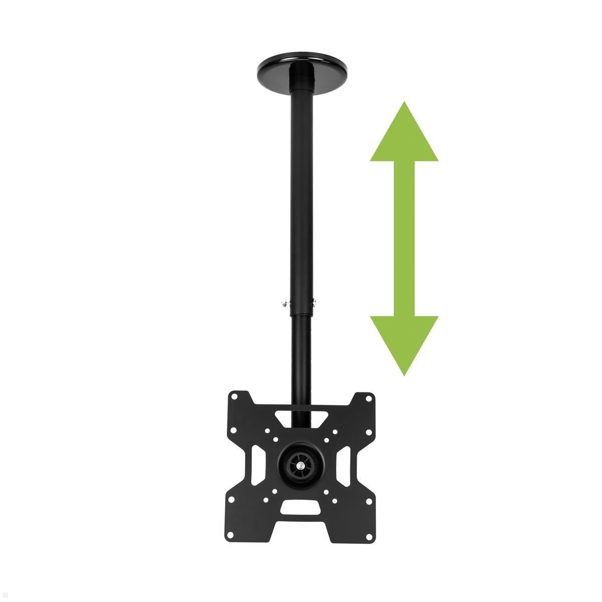 Der MonLines MDH013B TV Deckenhalter bietet vielfältige Funktionen für eine flexible Monitorplatzierung. Diese schwenkbare, drehbare und neigbare Deckenhalterung eignet sich sowohl für flache Decken als auch für Dachschrägen. Sie wird mit einer 794 mm langen Säule geliefert, die an verschiedenen Deckentypen, einschließlich abgehängter Decken, montiert werden kann. Die Deckenhalterung ist optimal für Bildschirme bis zu 37 Zoll dimensioniert. Sie besteht aus einer VESA Aufnahme und einer anpassbaren Säule. Die VESA-Aufnahme ermöglicht eine Neigung von +/- 15 Grad. Durch die 360° Schwenkfunktion / Drehfunktion des Teleskop Deckenhalters kann der Monitor in alle Richtungen gedreht werden. Die Höhe der Säule ist verstellbar, im Bereich von 444 bis 794 mm. Diese MonLines Deckenhalterung erweist sich als ideale Lösung für Digital Signage Anwendungen, sei es am Point of Sale (POS) in Schaufenstern und Einkaufszentren oder in stark frequentierten öffentlichen Bereichen wie Bahnhöfen und Flughäfen. MonLines – For your individual & functional needs.