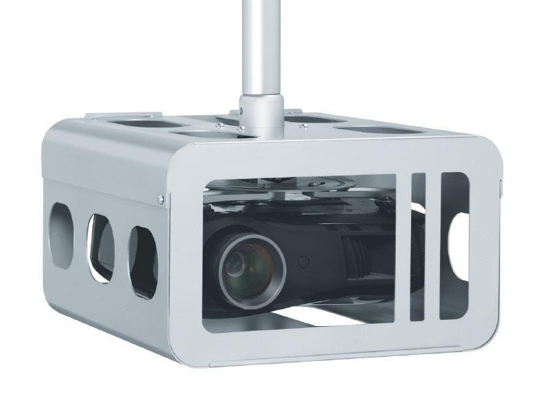 Die Vogels Diebstahlschutzgehäuse sind so konstruiert, dass der Beamer schnell und einfach zu warten ist. Große Öffnungen oben und unten am Beamergehäuse ermöglichten den problemlosen Zugang zum Projektor für Service- und Wartungsarbeiten. Große Belüftungsöffnungen sorgen für ausreichende Kühlung, um ein Überhitzen des Projektors zu verhindern. Nach dem Anbringen an der Decke kann der Projektor ausgerichtet werden. Nach der endgültigen Ausrichtung kann das Gehäuse mit speziellen diebstahlsicheren Schrauben geschlossen werden. Außerdem können ein Vorhängeschloss und/oder eine Schraube mit Mutter zur zusätzlichen Sicherheit angebracht werden.